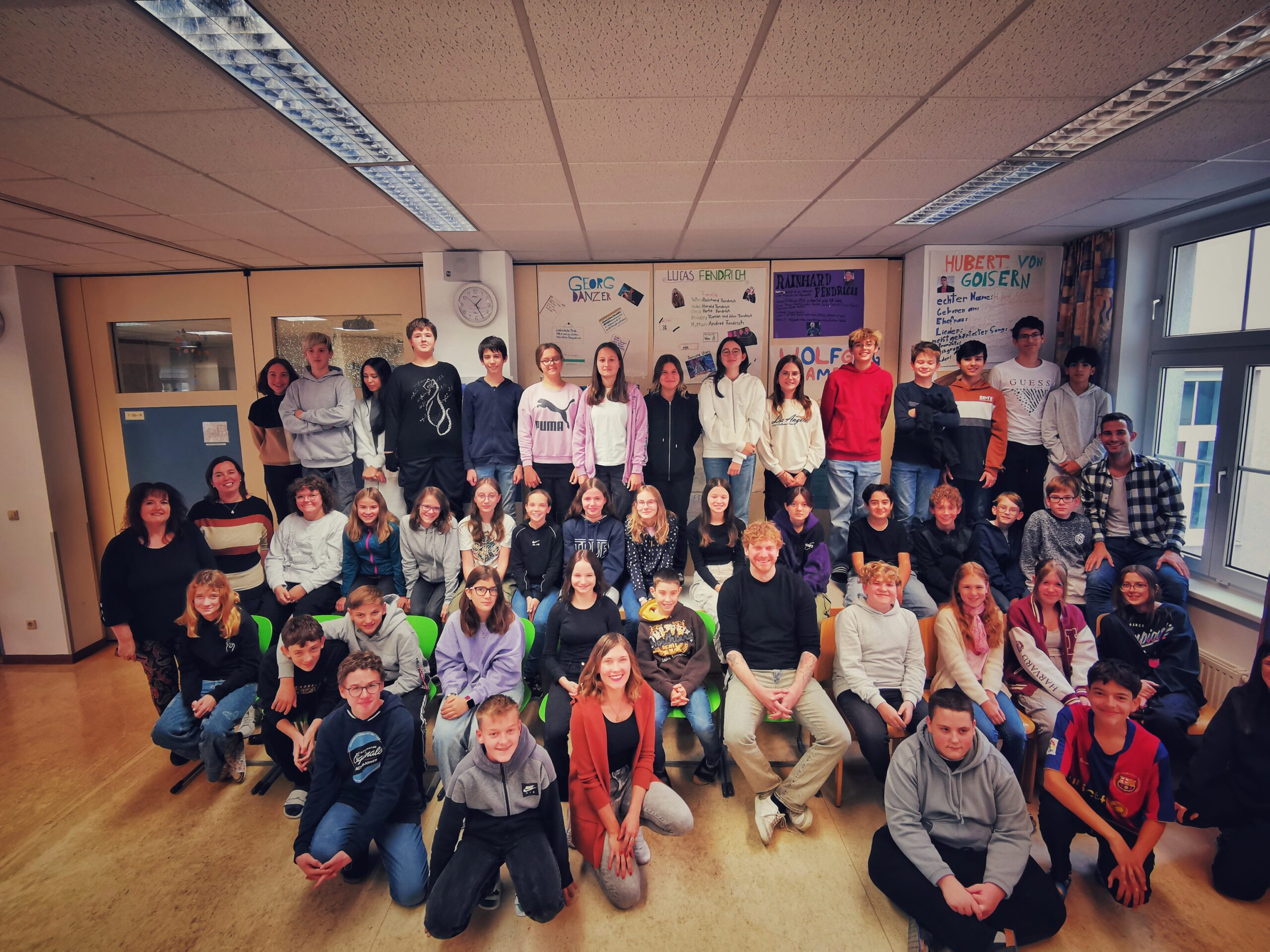 Gestern wurden die 3Fa und 3Fb im Rahmen ihres Austropop-Projektes mit einem außergewöhnlichen Besuch beehrt. Der Musiker Lucas Fendrich, auch bekannt durch Dancing Stars, gewährte den SchülerInnen und LehrerInnen Einblicke in die Welt eines Musikers.