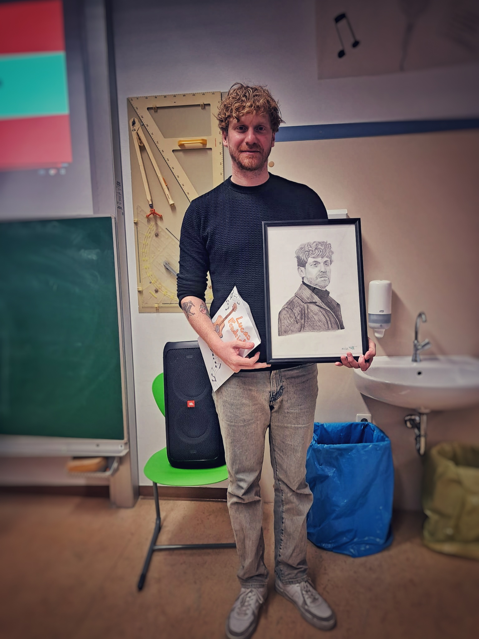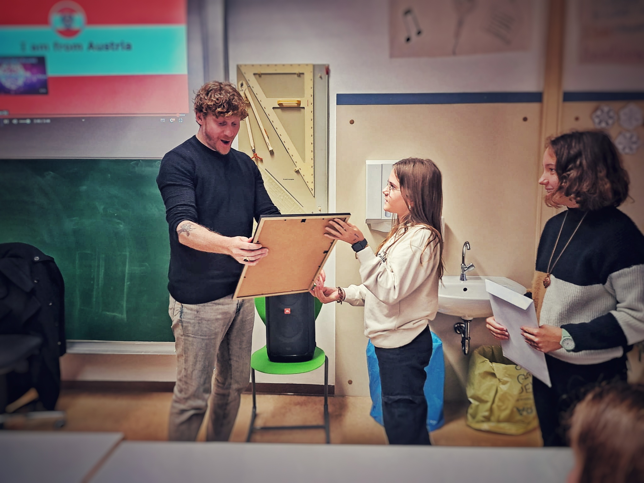 Am Ende überreichten die Klassensprecherinnen der beiden Klassen Alexandra und Viki dem Musiker noch selbst gemachte Geschenke. An diesem Tag brachte Lucas sowohl Kinder-, als auch Lehreraugen zum Strahlen. Ein äußerst symphathischer, offener und authentischer Musiker!