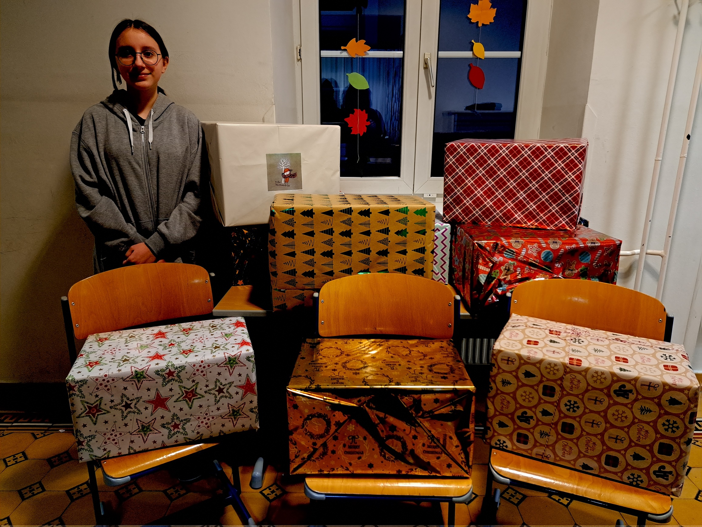 Mia, eine Schülerin der 3fa, erzählte uns von einer Aktion der Johanniter und die ganze Schule war sofort bereit, Päckchen für hilfsbedürftige Familien zu füllen und wunderschön zu verpacken. Darin befinden sich lebensnotwendige Güter und jede Klasse packte noch eine nette Grußkarte dazu. Wir hoffen, wir konnten ein bisschen helfen und Freude bereiten. Eine tolle Aktion!
