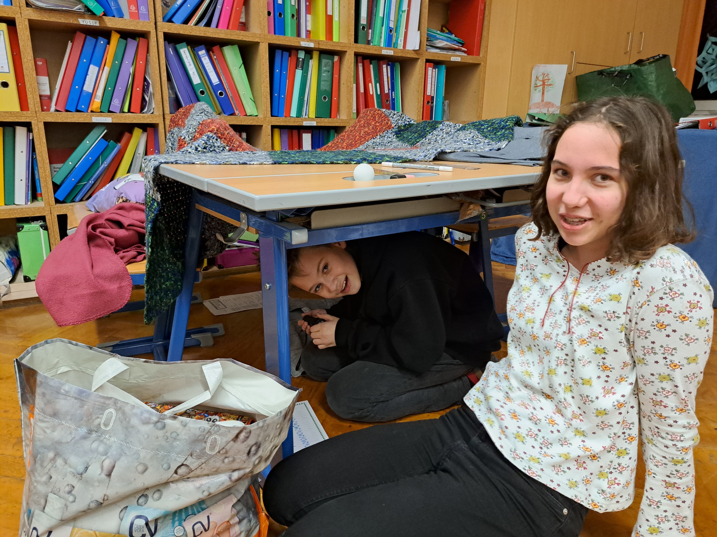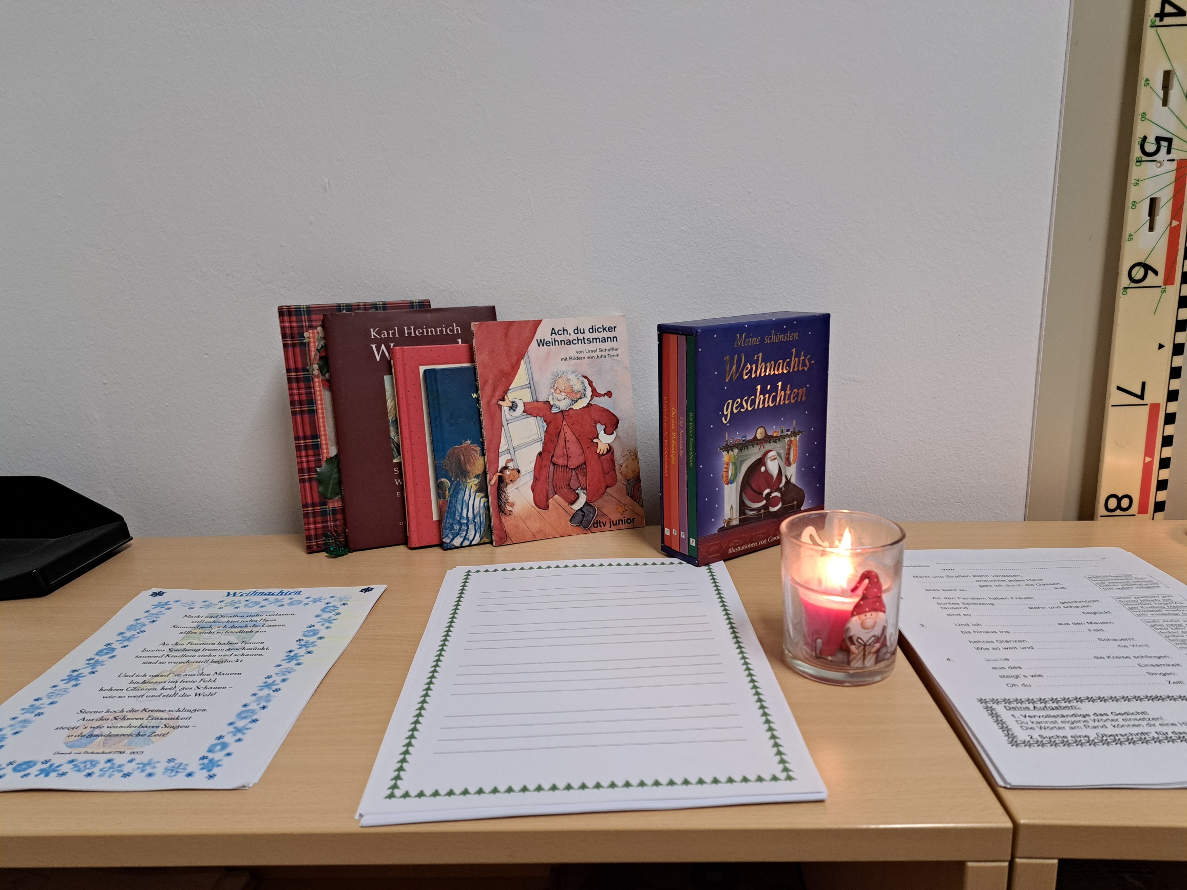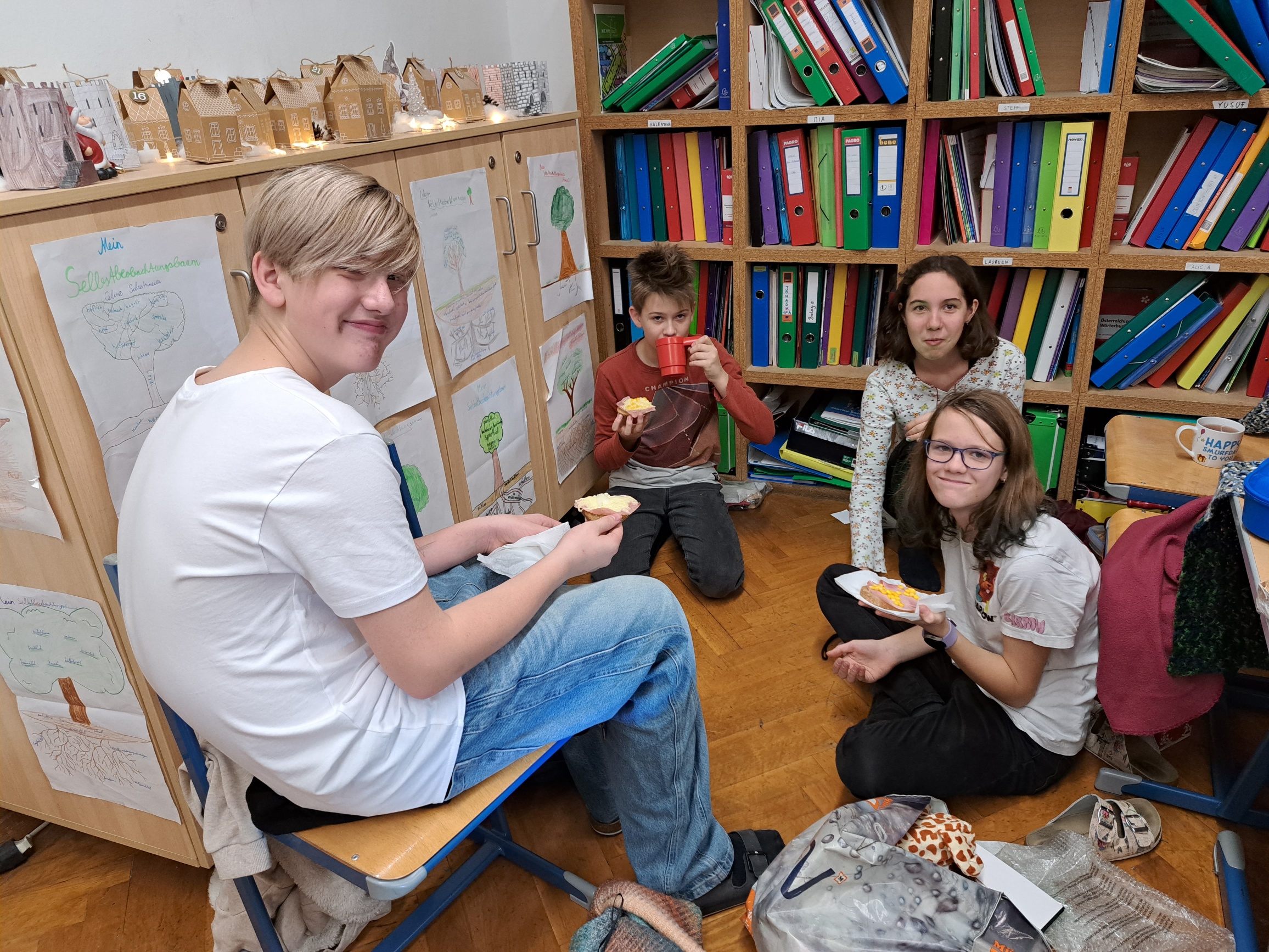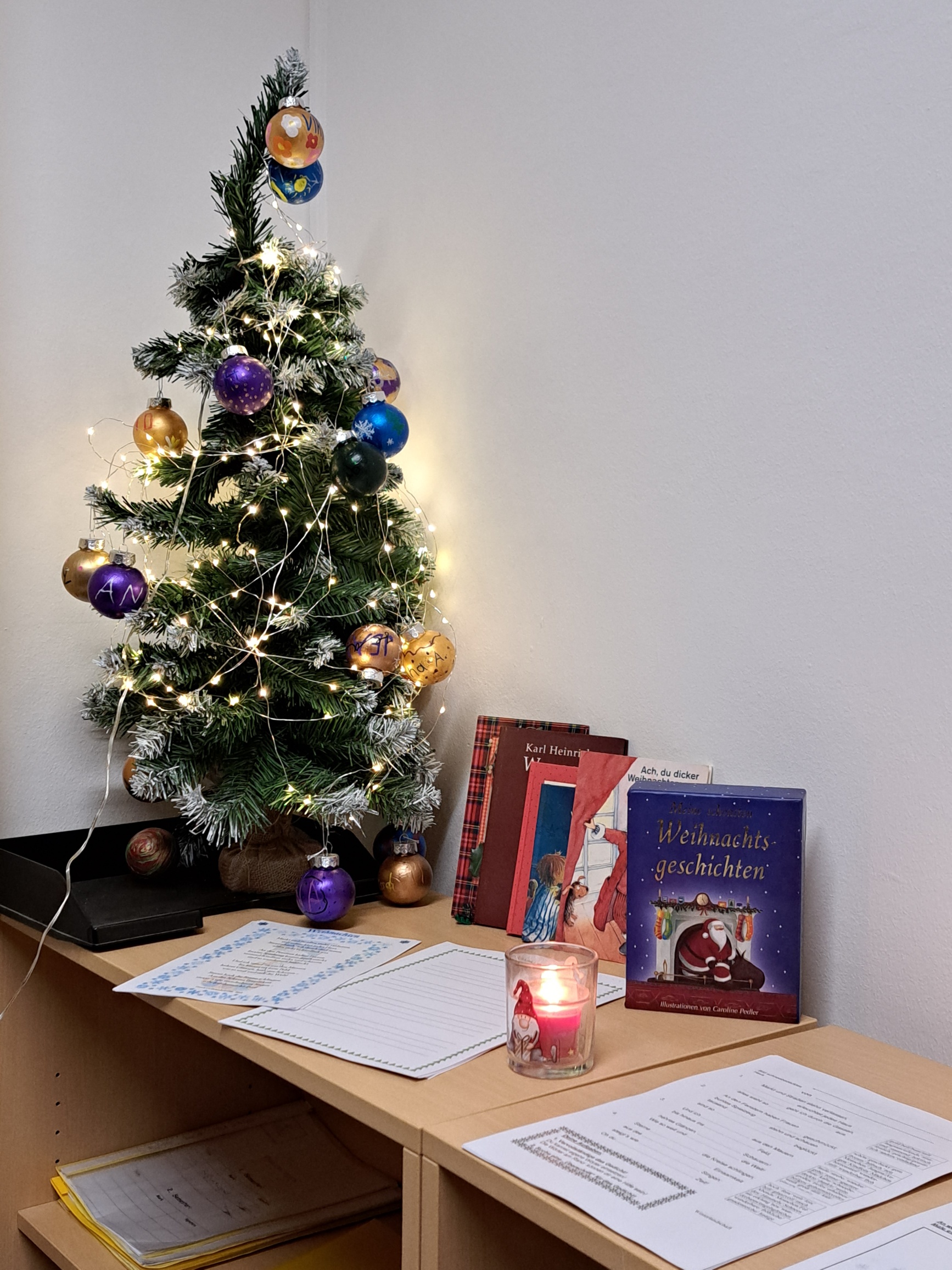Zwei Wochen vor den Weihnachtsferien gab es für die 3fa einen besinnlichen Weihnachtsleseabend. Es gab überbackene Brote, selbstgemachten Punsch, Tee und natürlich leckere Kekse. Die Schüler bauten sich Höhlen, in denen sie mit Taschenlampen Weihnachtsgedichte und in ihren Lieblingsbüchern lesen konnten. Als Abschluss geisterten wir mit unseren Lampen durch die finstere Schule. Die Schüler waren begeistert und wünschten sich gleich eine Wiederholung im kommenden Schuljahr.