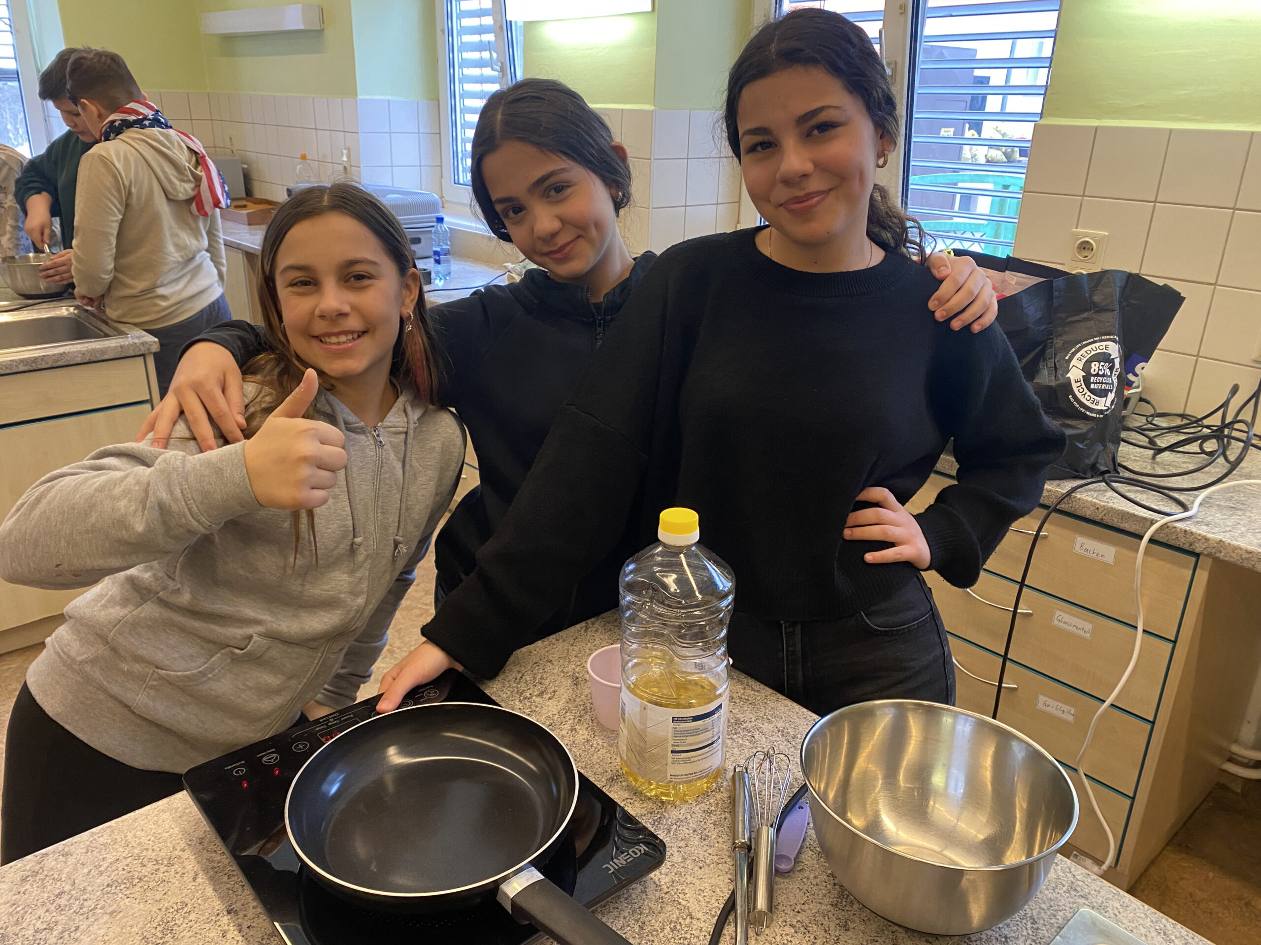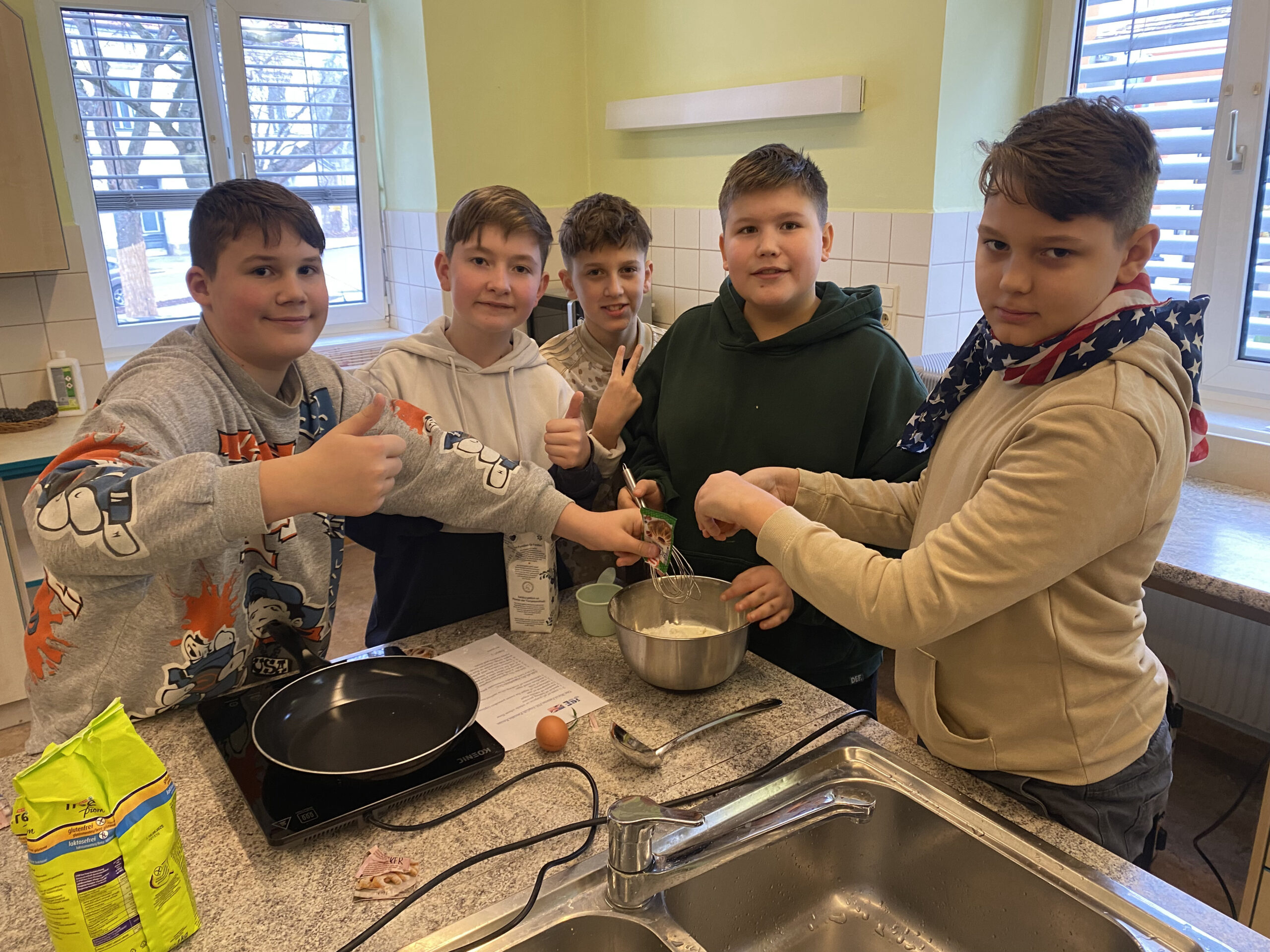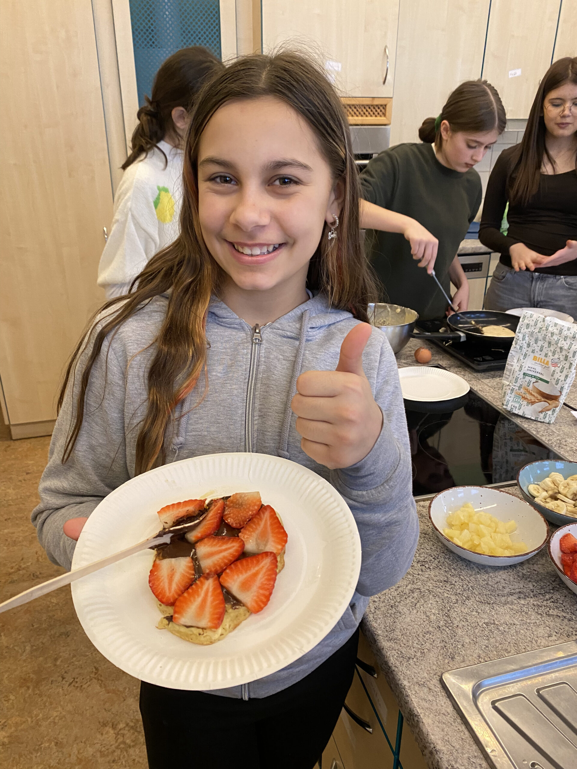 Am Dienstag stand dann ein kulinarisches Highlight auf dem Programm: Gemeinsam mit Mr. Alexander und Mr. Rafael bereiteten die Schüler*innen köstliche American Pancakes zu. Dabei wurde nicht nur gekocht und probiert, sondern auch viel über die Esskultur in den USA gesprochen.