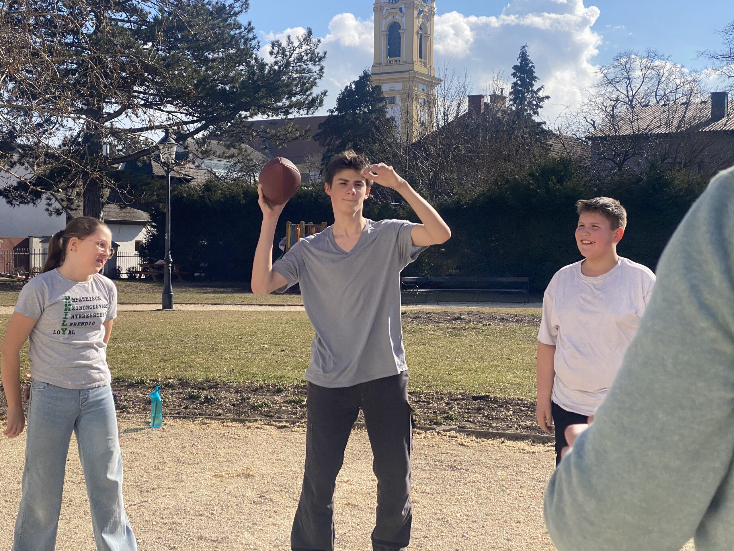 Am Montag ging es dann nach draußen, um American Football zu spielen! Mit viel Einsatz und Teamgeist lernten die Schüler*innen die Grundlagen dieses typisch amerikanischen Sports und hatten jede Menge Spaß auf dem Spielfeld.