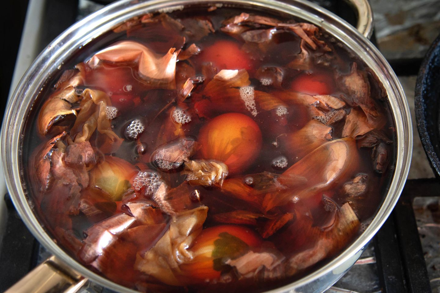 Mit geduldiger Hand und viel Kreativität wurden die Eier mit Blättern bedeckt, mit einem Teil Strumpfhose befestigt und in einem Top mit braunen und roten Zwiebelschalen gekocht. Dabei entstanden eine Vielzahl an kunstvollen, rustikalen Farben und Formen, die nicht nur ökologisch, sondern auch besonders dekorativ sind.