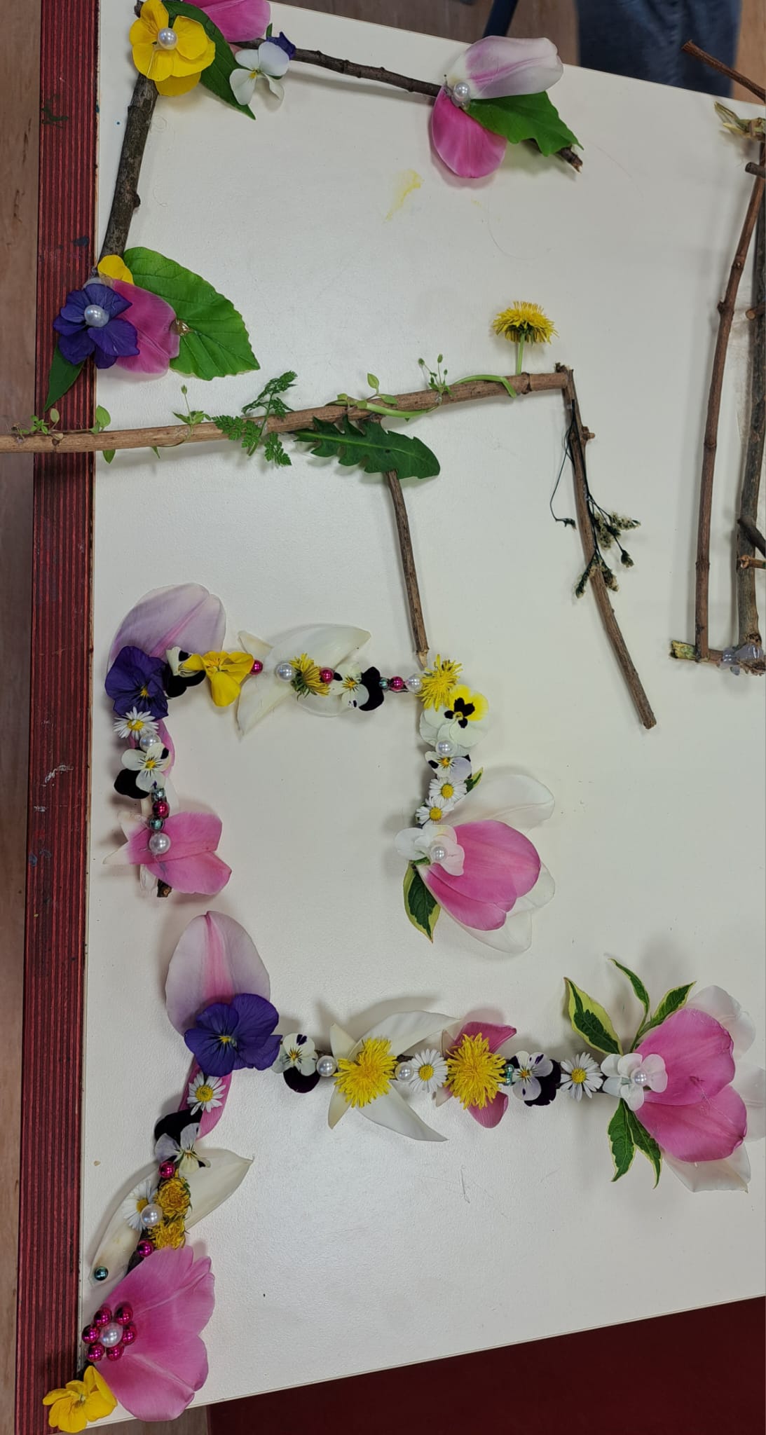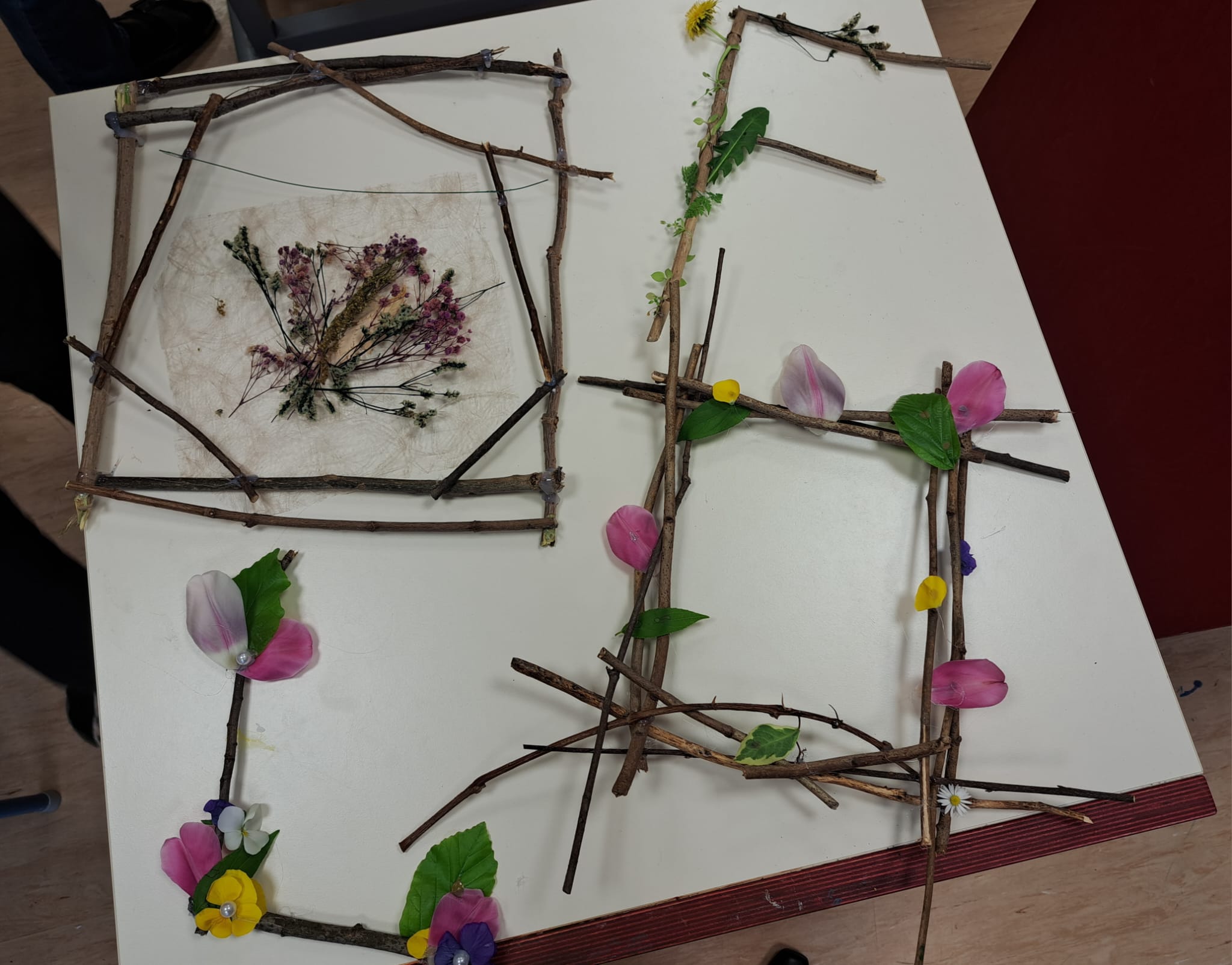 Die letzten zwei Wochen wurde unser Werkraum zur echten Kreativwerkstatt! Im Werkunterricht haben die 4Fa und die 4Fb mit Naturmaterialien gearbeitet – und zwar nicht nur mit Ästen, sondern auch mit frischen Blumen und Pflanzen aus unserer Outdoorklasse.
