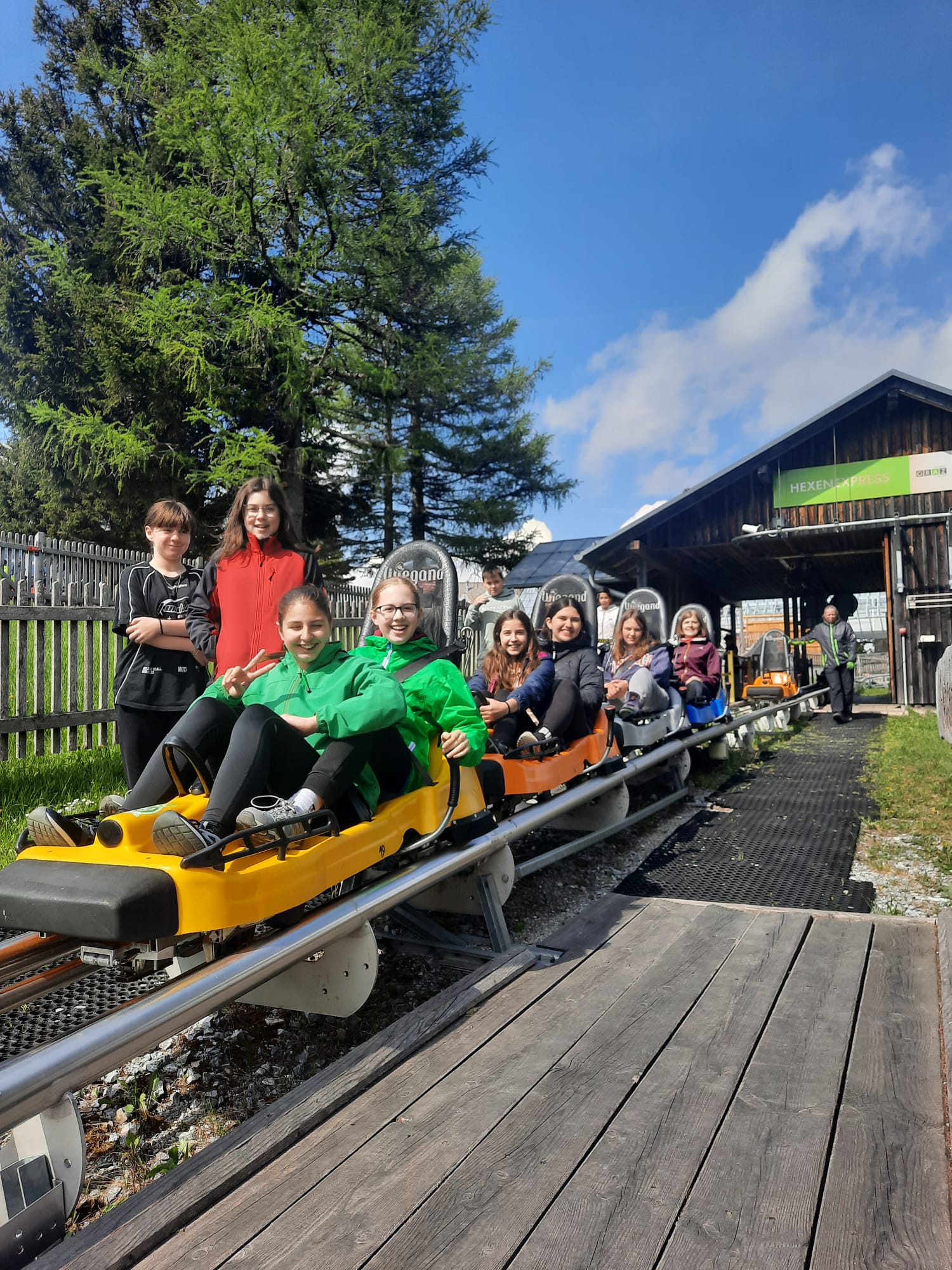 Am zweiten Tag stand der Ausflug auf den Grazer Hausberg – den Schöckl – auf dem Programm. Schon am Vormittag wartete ein abenteuerlicher Kletterpark auf uns. Mit viel Mut und Geschick stellten sich die Kinder den verschiedenen Parcours und überwanden so manche Herausforderung in luftiger Höhe. Anschließend ging es mit der Gondel weiter hinauf auf den Schöckl, wo die Schülerinnen und Schüler begeistert die Sommerrodelbahn ausprobierten. Bei bester Laune und tollem Wetter war der Spaß auf der rasanten Strecke garantiert.