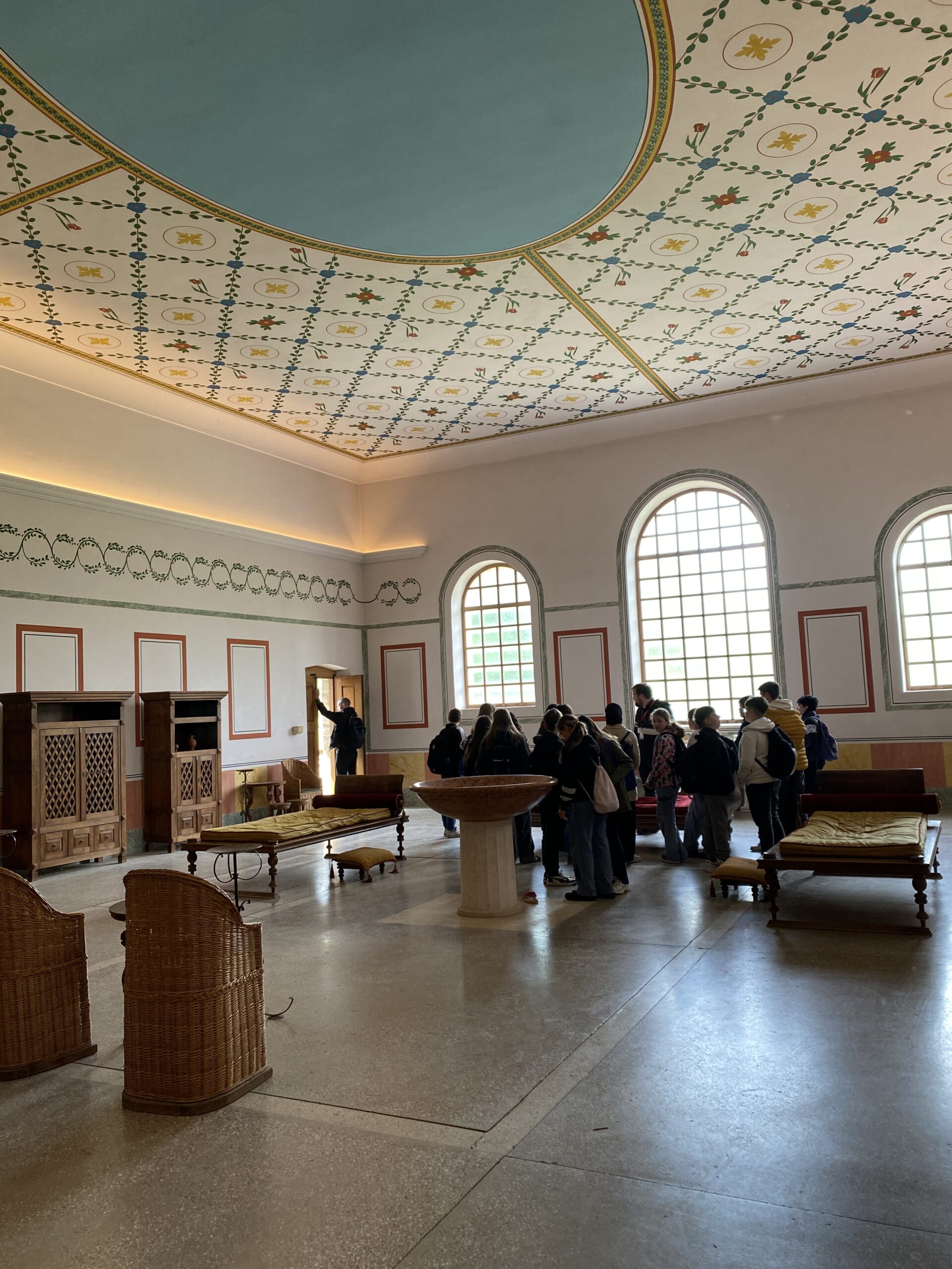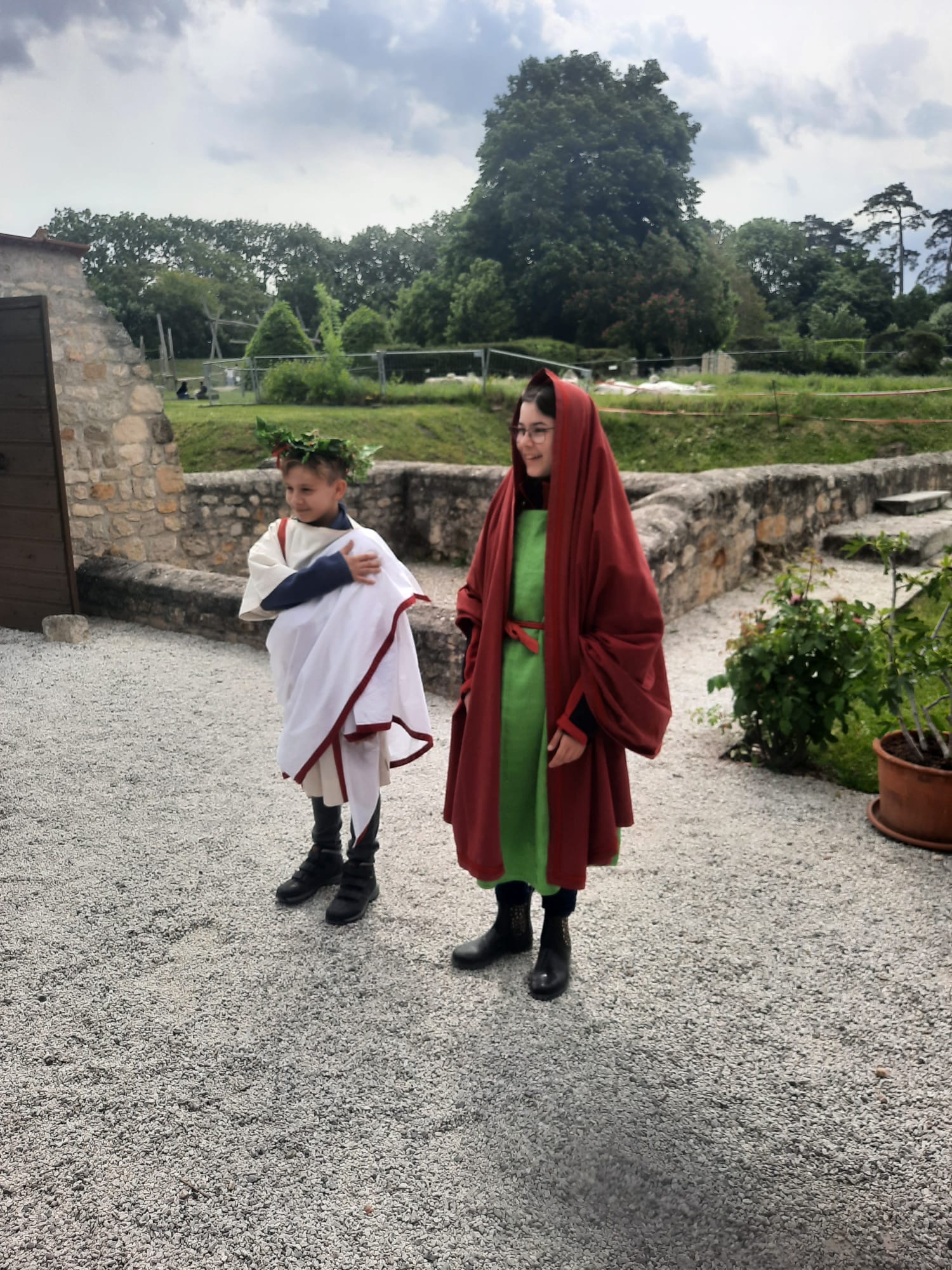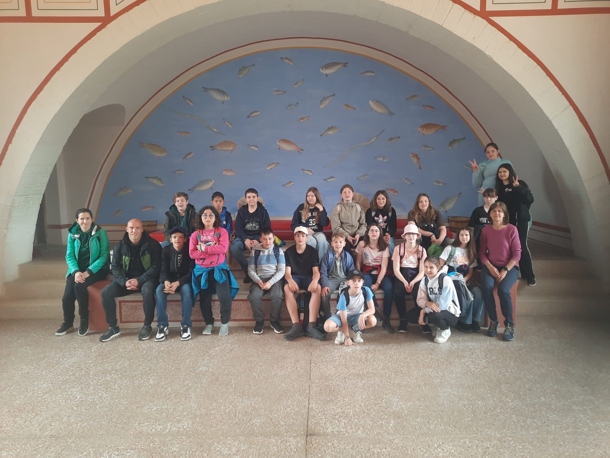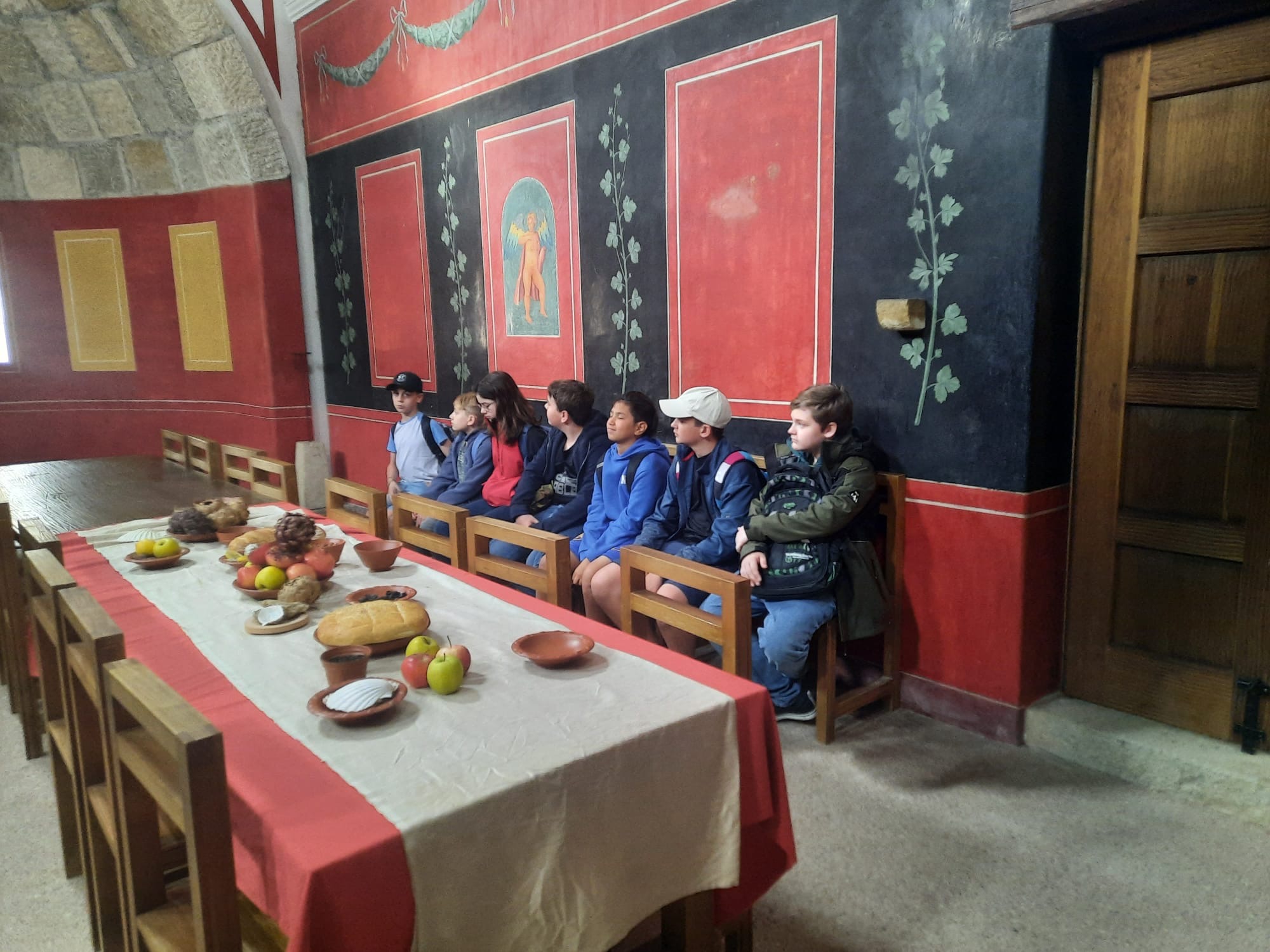 Nach unserer Ankunft stärkten wir uns zunächst mit einer Jause, bevor wir von unseren Guides empfangen wurden, die uns durch das rekonstruierte römische Stadtviertel führten. Besonders beeindruckend waren das Wohnhaus, die Thermen und die imposante Stadtvilla mit originalgetreuen Wandmalereien und Fußbodenheizung.