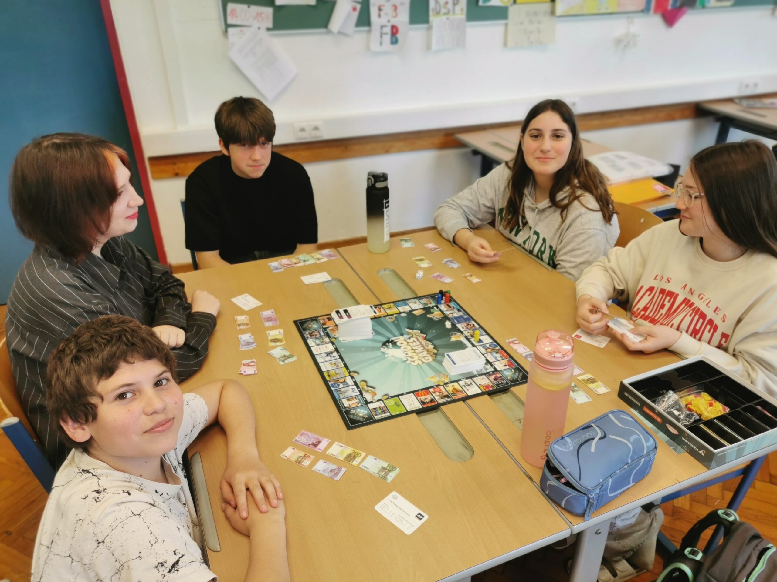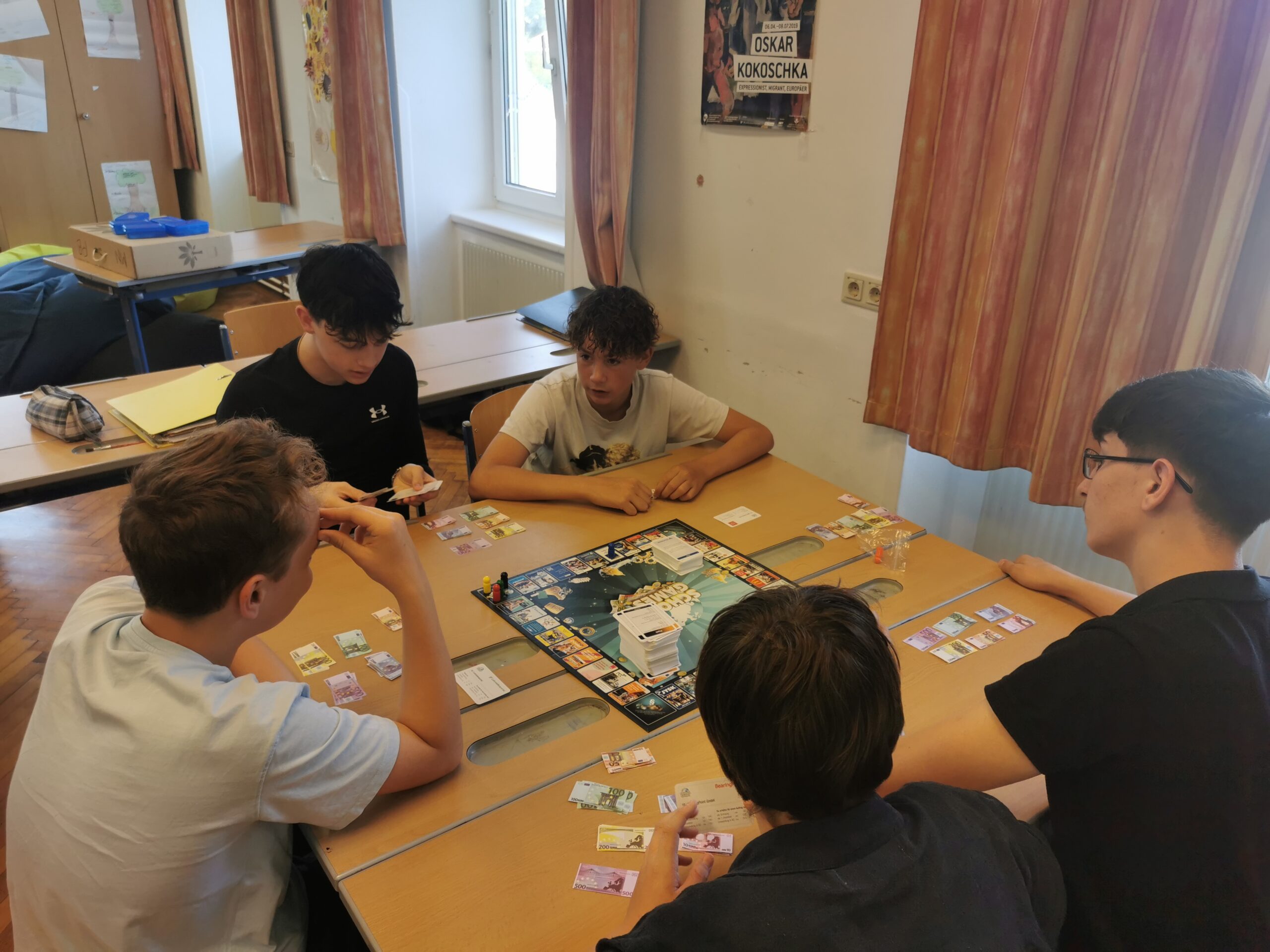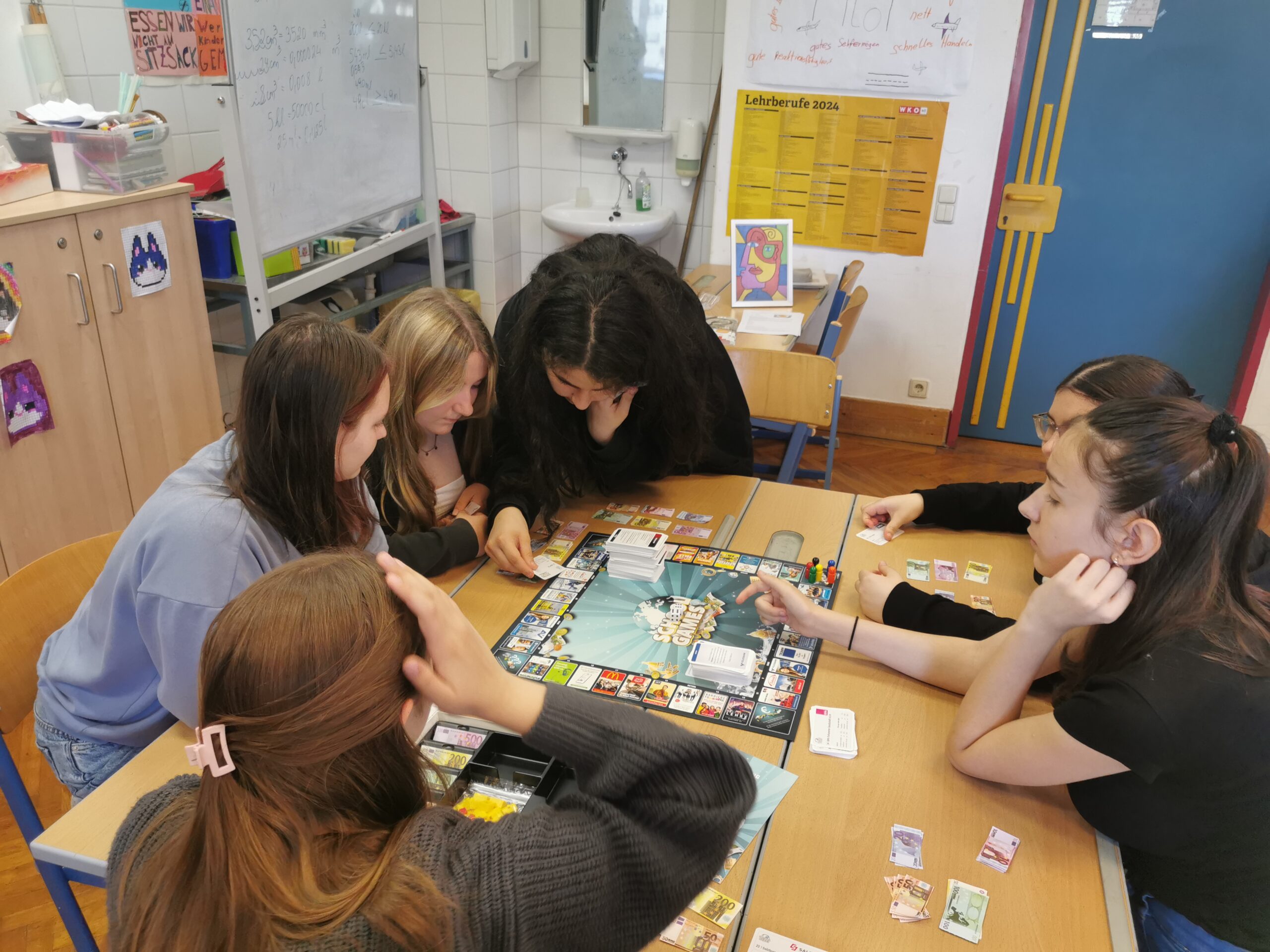 Heute versuchte sich die 3F in dem Spiel Schoolgames MINT-Edition. Das Brettspiel ist so aufgebaut, dass die SchülerInnen möglichst viele Unternehmen kaufen und in diese investieren sollen. Gleichzeitig müssen sie ihr Wissen anhand von Fragen aus dem MINT Bereich unter Beweis stellen. Die Lernenden hatten sichtlich viel Spaß und wer weiß? Vielleicht nehmen sie auch einmal an einem Schoolgames Wettbewerb teil.
