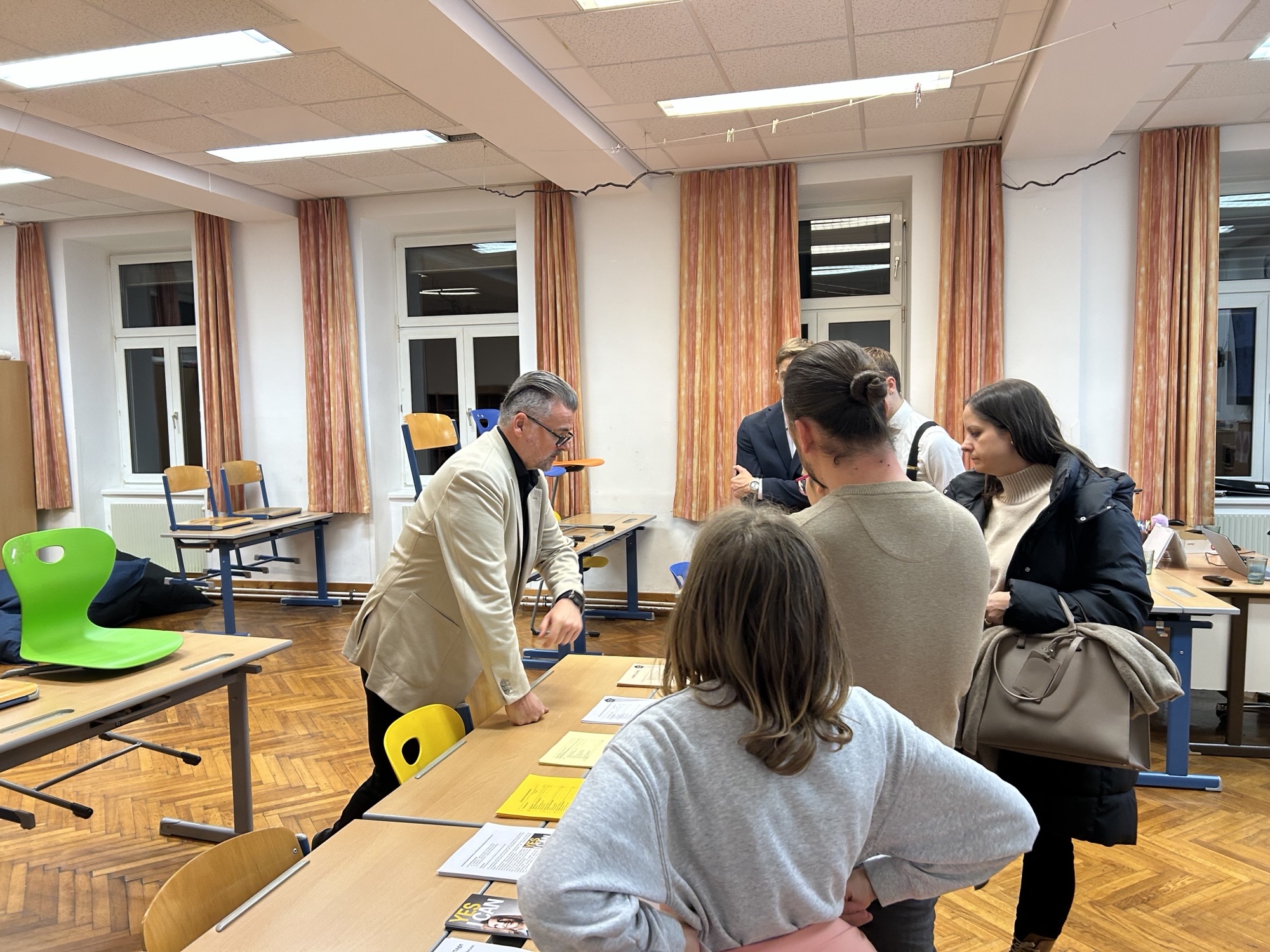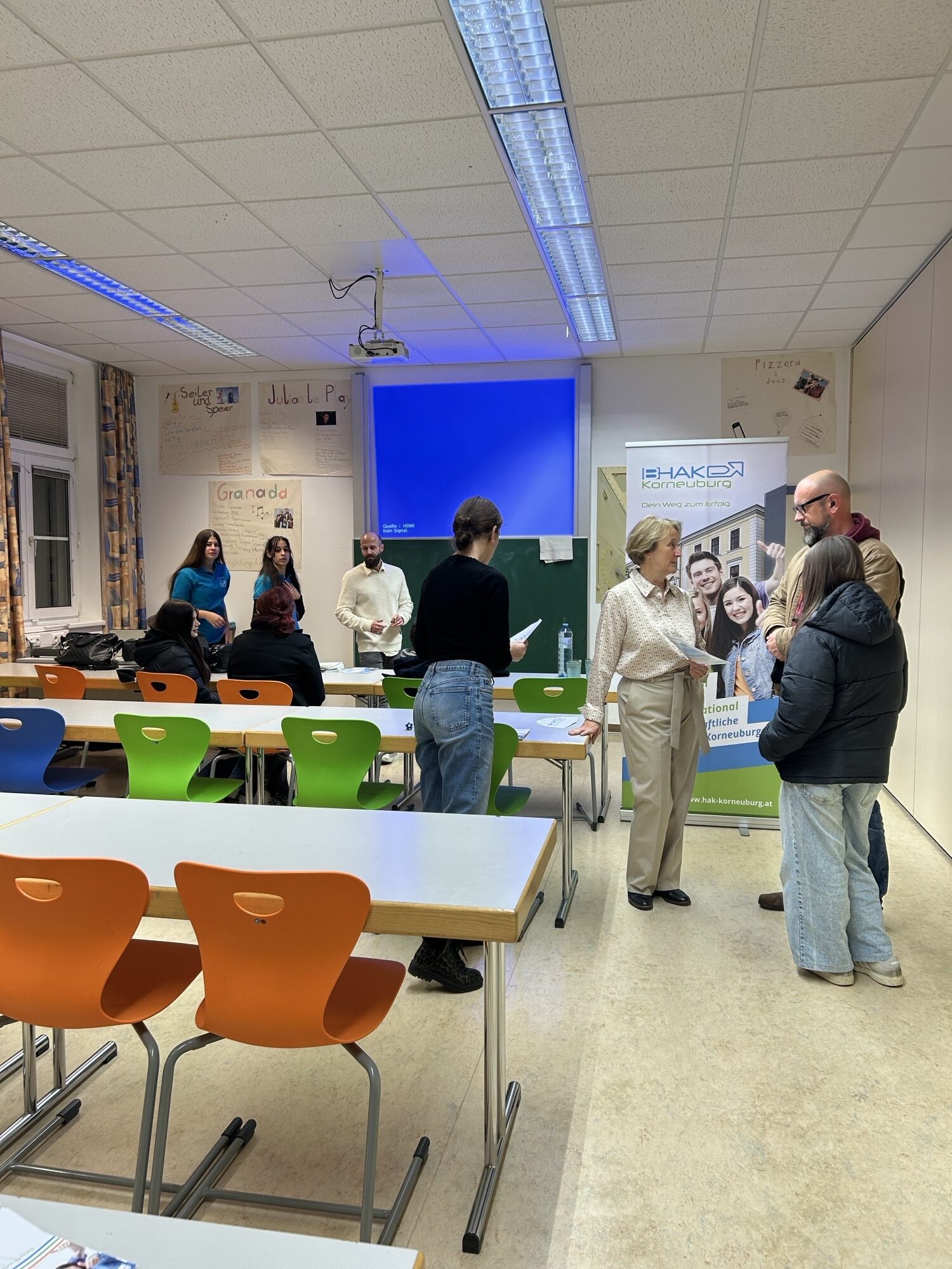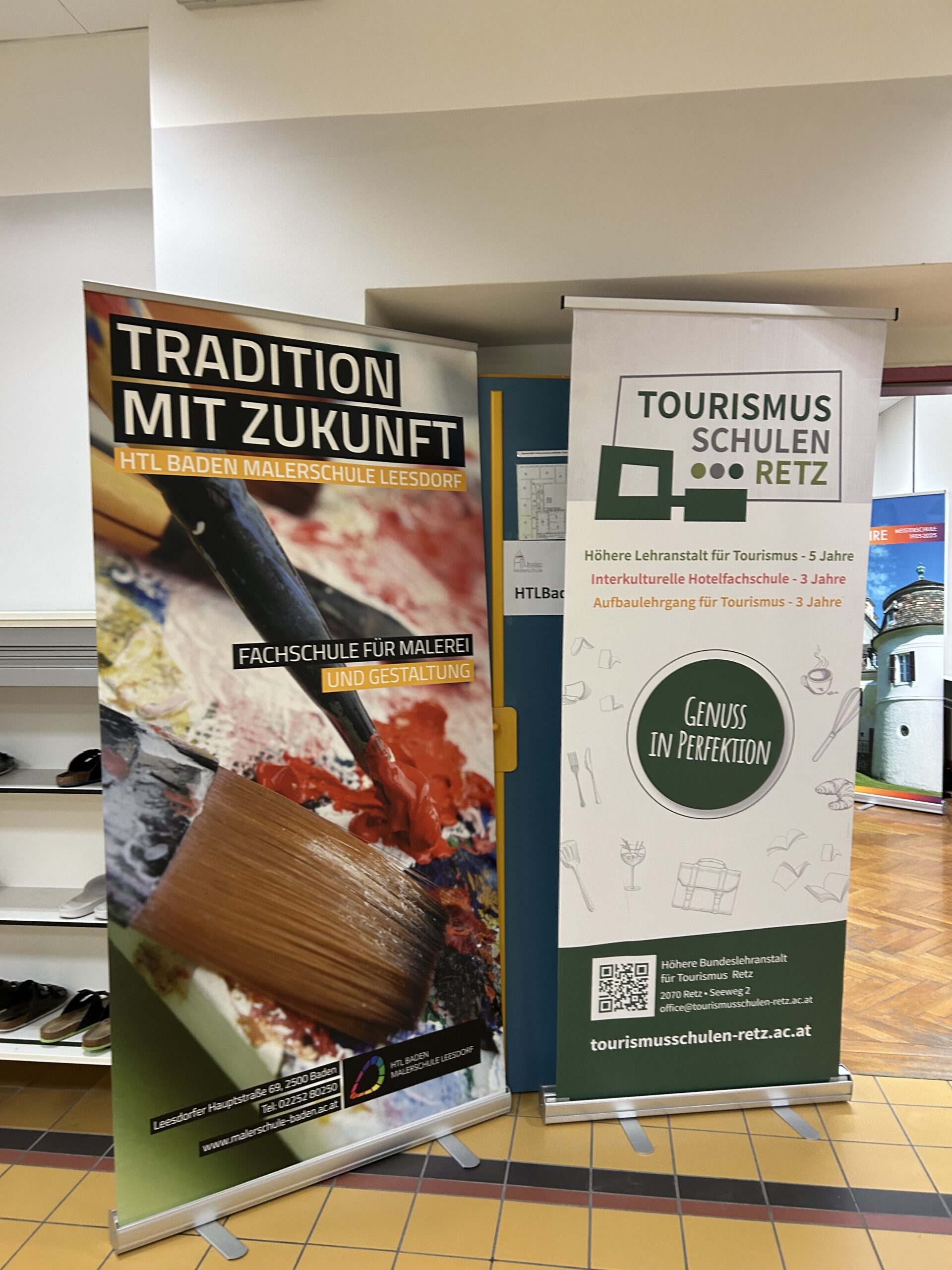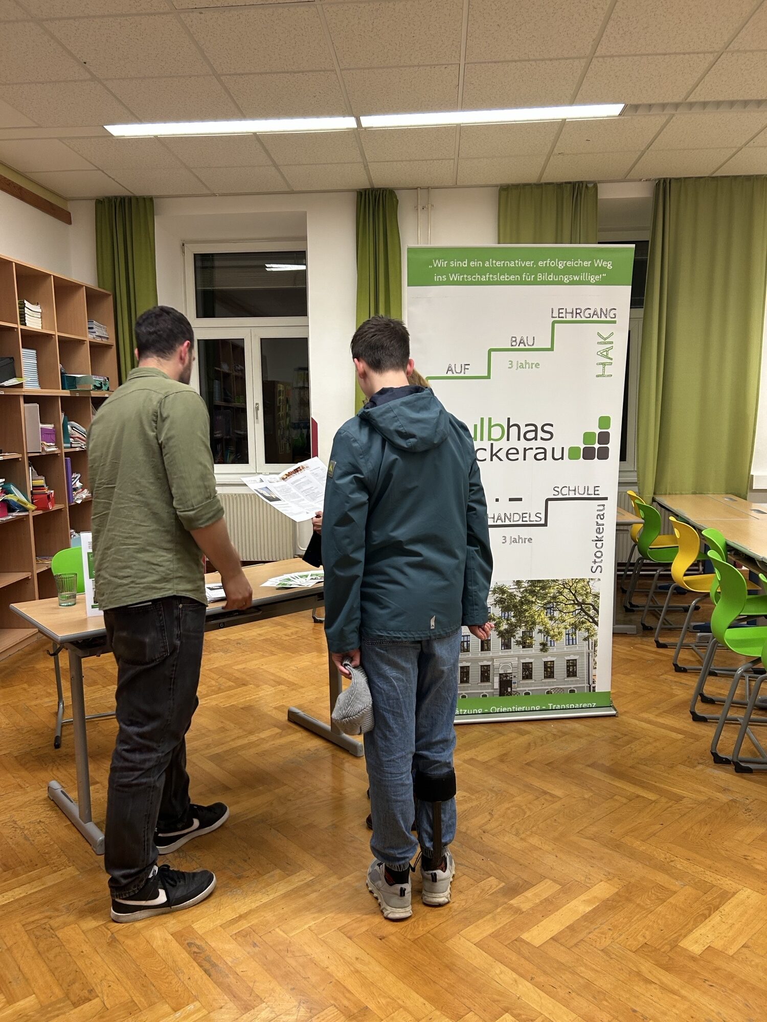 Beim alljährlichen Abend der Schulen in Kooperation mit der MINT- und Informatikmittelschule besuchten uns wieder sehr viele weiterführende Schulen, um sich vorzustellen. Neben beliebten Schulen aus der Region wie der HTL Hollabrunn, HAK Korneuburg, BAfEP de la Salle oder der Sozialfachschule Stockerau, nahmen einige Ausbildungsstätten auch einen weiteren Weg auf sich. Schon zum zweiten Mal stellten die HTL Malerschule Baden sowie die HLUW Yspertal ihre besonderen Schwerpunkte vor. Neu und von weit her angereist, war das Holztechnikum Kuchl aus Salzburg. Eine Fachschule für Holzwirtschaft sowie eine HTL für Wirtschaftsingenieure und Holztechnik befinden sich am dortigen Schulstandort.