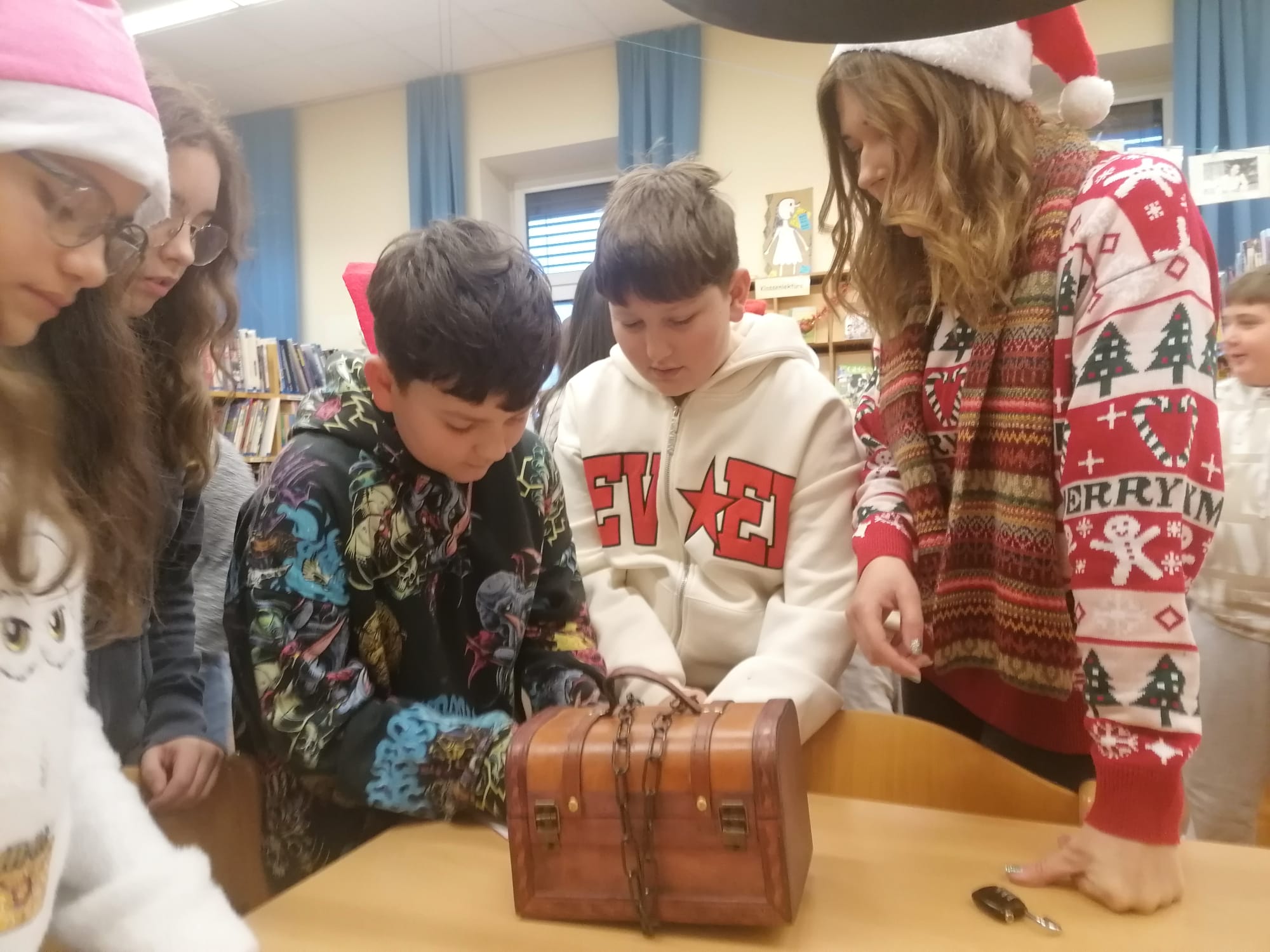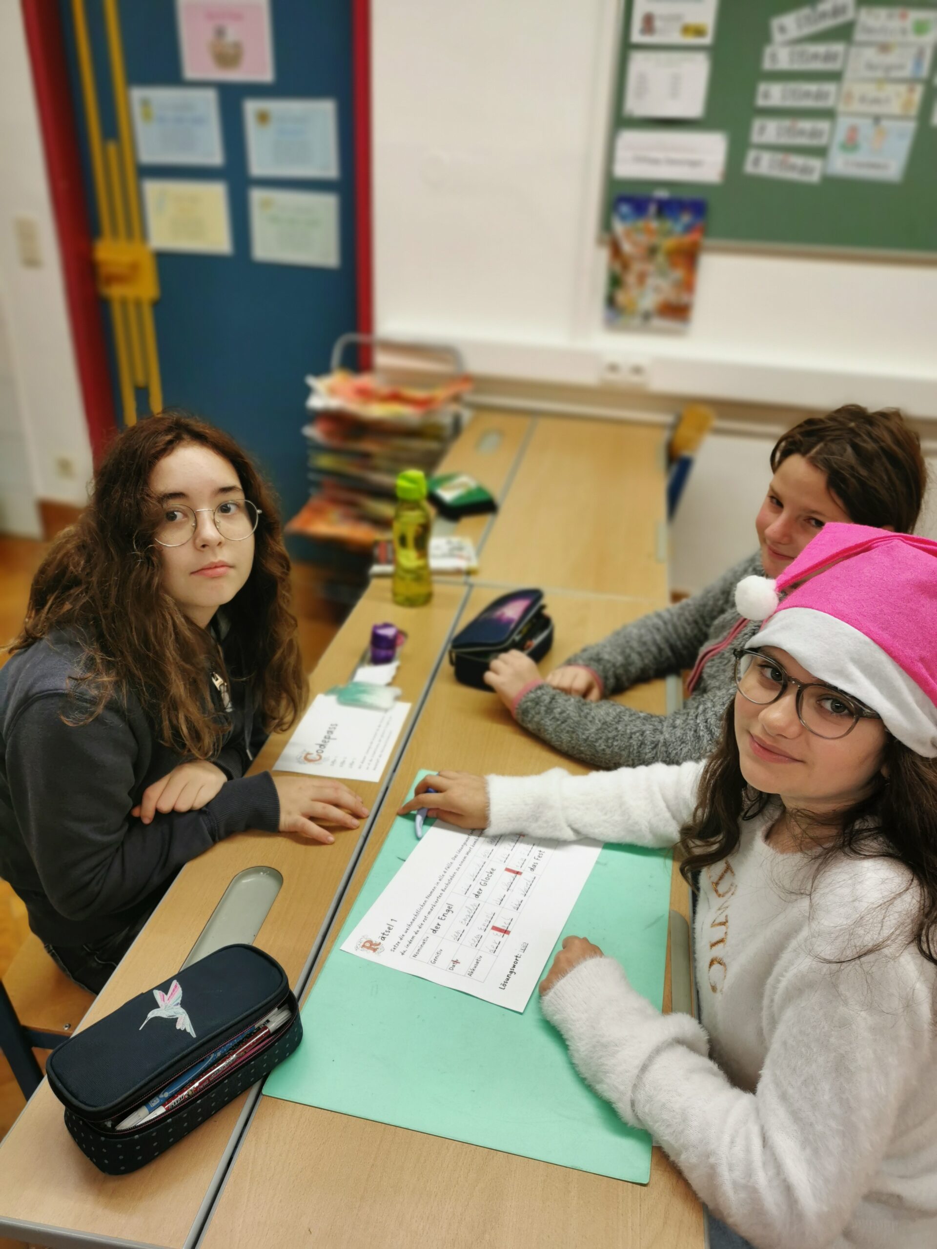 Am letzten Schultag vor den Weihnachtsferien waren die 1. Klassen sehr gefordert. Sie mussten das Weihnachtsfest retten, denn leider hatte der Weihnachtsmann den geheimen Code für den Zugang zu seiner Weihnachtswerkstatt vergessen. Nur mit Hilfe der 1. Klassen konnte das Fest gerettet werden. Die Schülerinnen und Schüler mussten Rätsel lösen, um so an den Code für die Werkstatt zu gelangen.