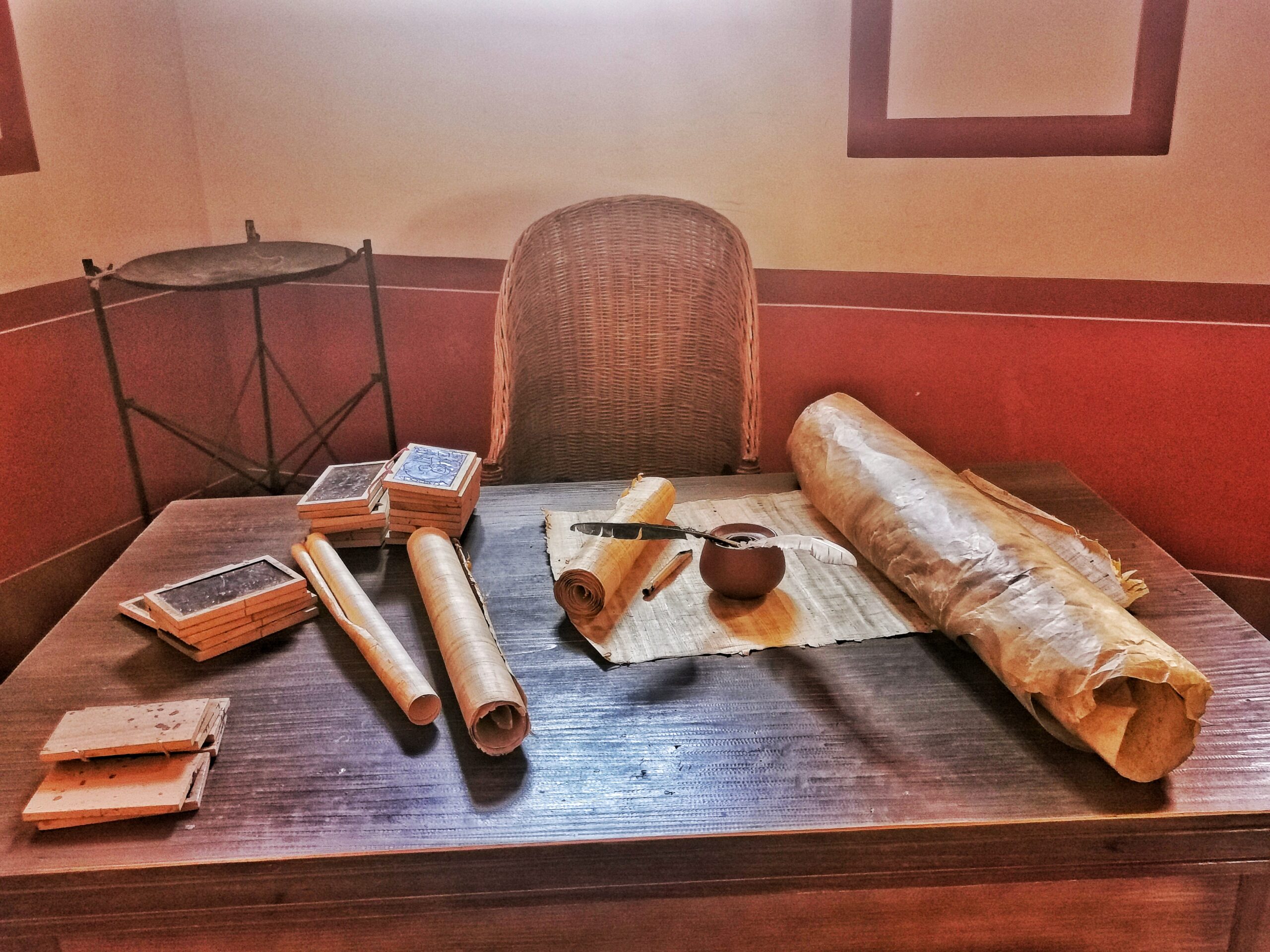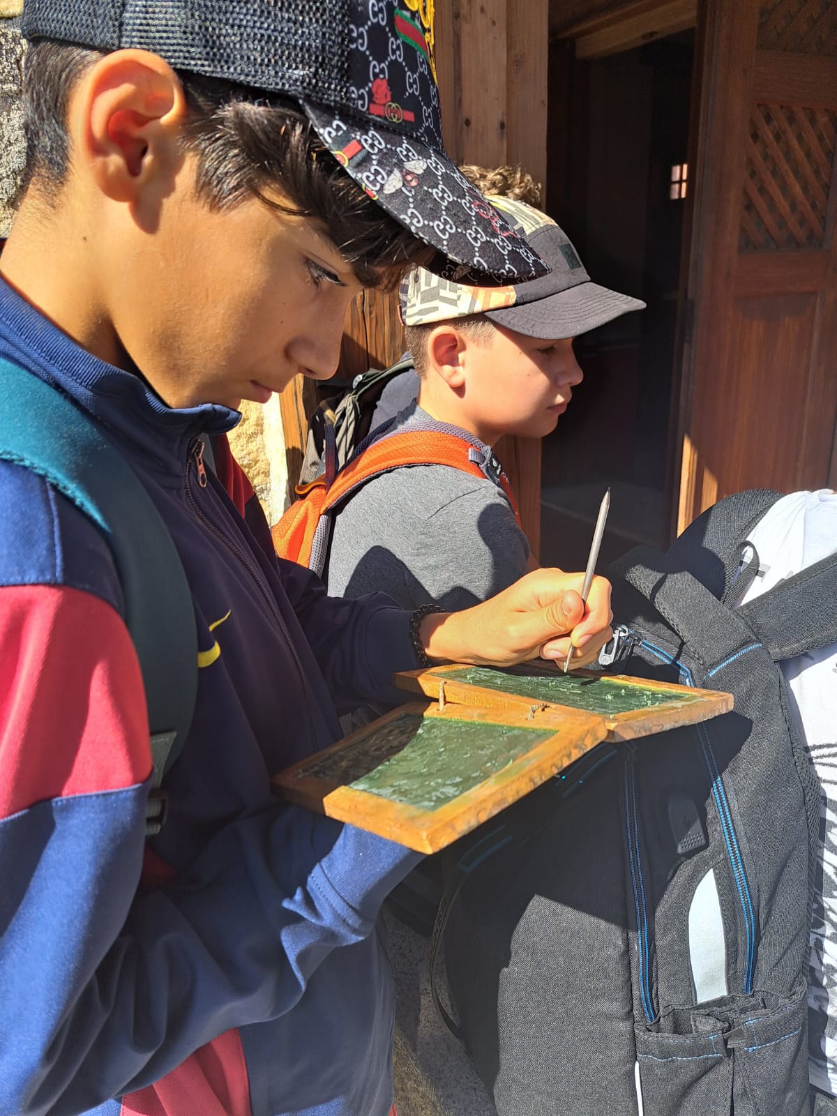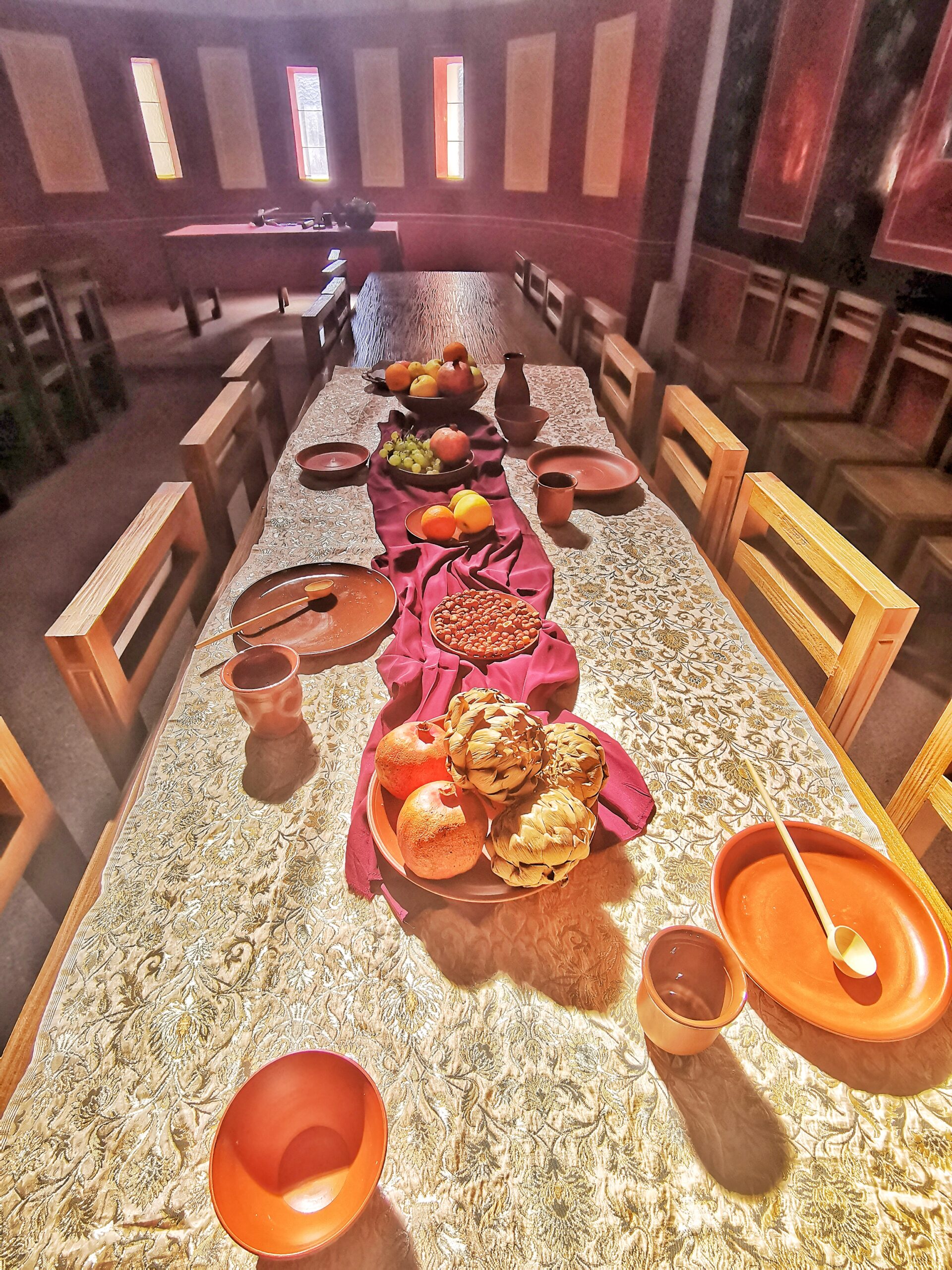 Neben der Funktion von Amphoren und der unbeschreiblichen Technologie der Fußbodenheizung, lernten die SchülerInnen auch etwas über die römischen Schreibutensilien und Beschreibstoffe. Sie durften sogar ausprobieren, wie es sich anfühlt auf einer Wachstafel zu schreiben. Manche SchülerInnen kamen sogar in den Genuss das klassische römische Kleidungsstück, die Tunika, anzuprobieren.