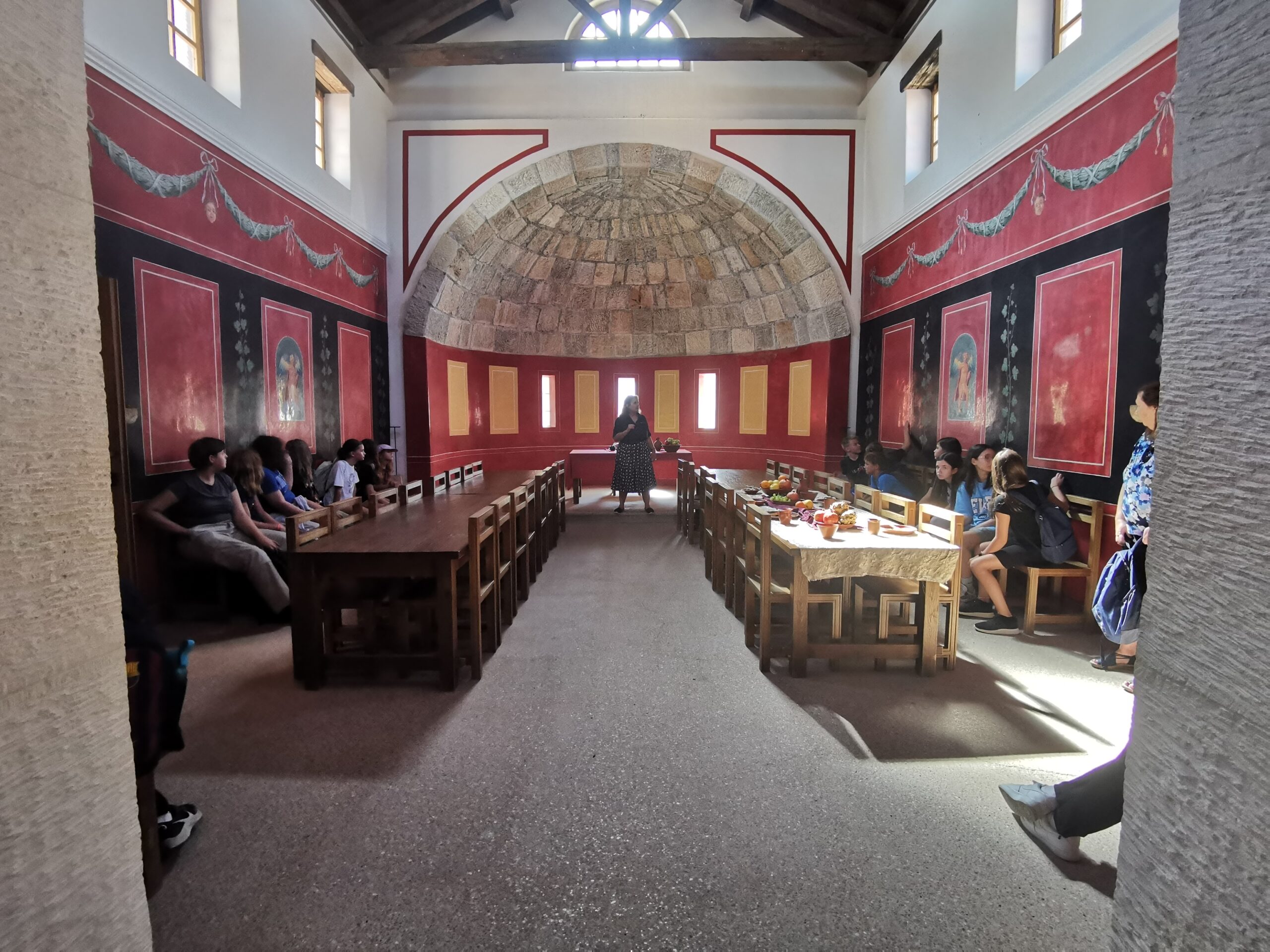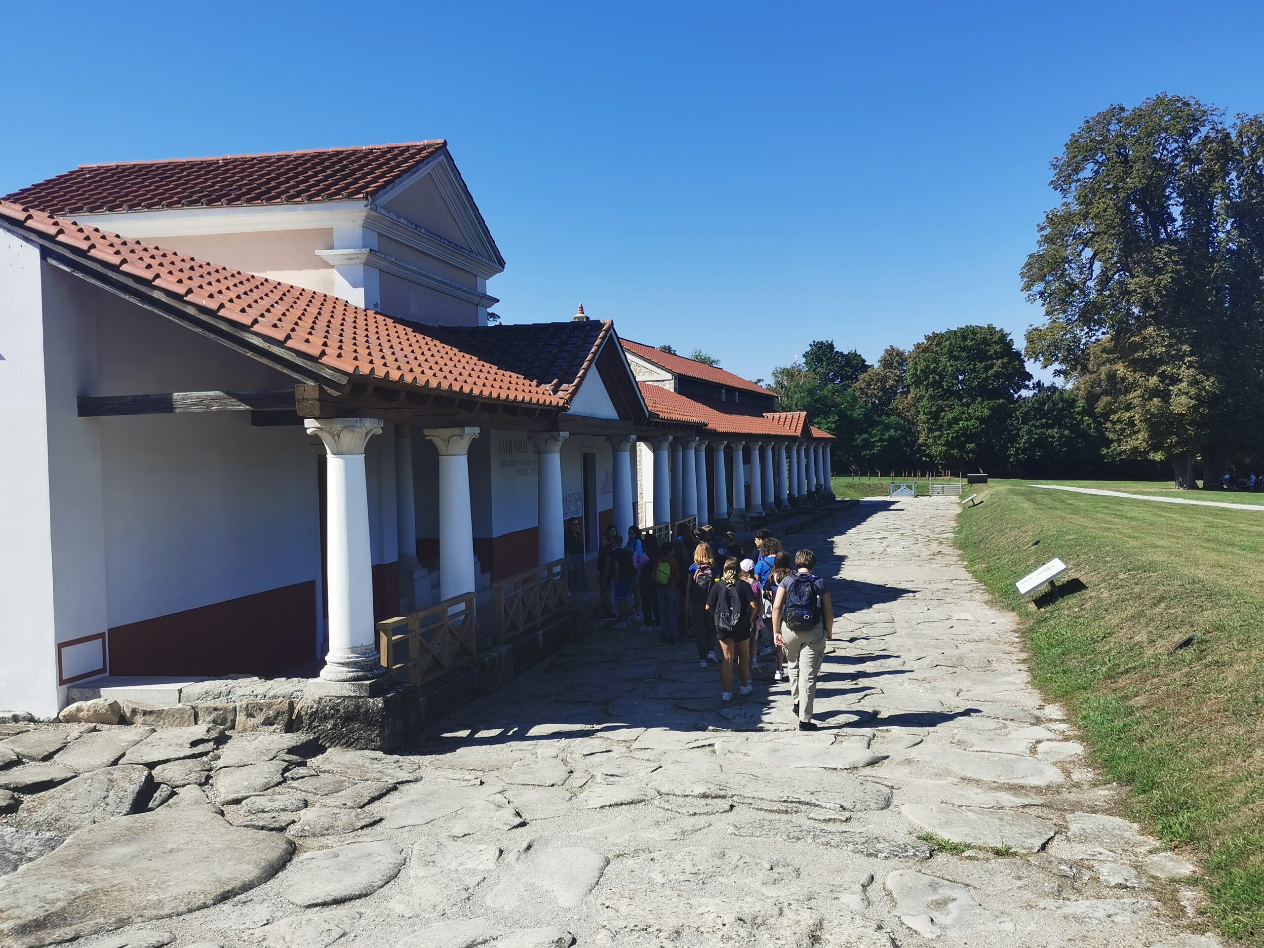 Heute verbrachten die 3. Klassen ihren traditionellen Ausflug zu Schulbeginn in der Römerstadt Carnuntum. Begeisterte SchülerInnen streiften durch die Straßen der einstigen Metropole. Neben einer Färberei und der Villa eines reichen Mannes, konnten sie das Alltagsleben der Römer näher kennenlernen, als die Therme besichtigt wurde. Thermen waren stets so aufgebaut, dass man zunächst einen Raum mit einem kalten Becken vorfand, anschließend folgte ein weiterer Raum mit einem lauwarmen Becken, bis schließlich das heiße Becken in einem 38-40 Grad heißen Raum folgte. Bei den sommerlichen Temperaturen hielten es die Wenigsten lange in diesem Raum aus.